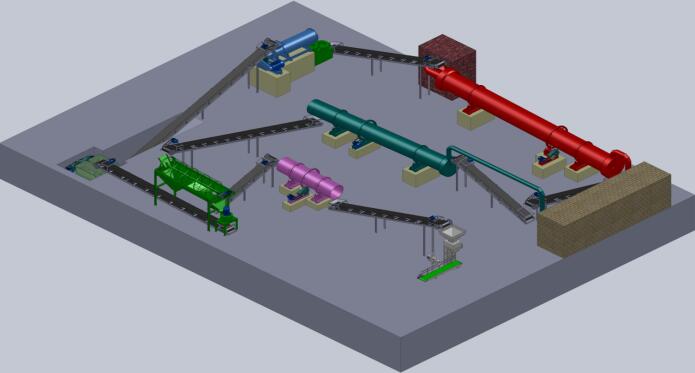 篩分過程是由滾筒篩分機將不合格的顆粒篩選出來。不合格的顆粒將由輸送機輸送至攪拌機重新加工,合格的有機肥由自動包裝機進行包裝。